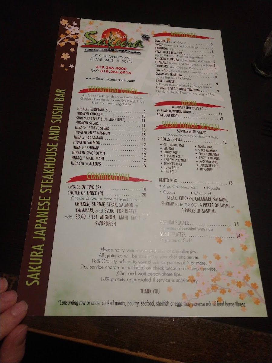 Welcome to Sakura Japanese SteakHouse & Sushi Bar, where culinary artistry meets entertainment right in Cedar Falls, IA. Nestled on University Ave, this vibrant eatery is renowned for its teppanyaki dining experience. Guests can savor a selection of tantalizing combinations, such as ribeye steaklobster or filet mignon alongside scallops. Each dish is not only a feast for the palate but also a visual delight, expertly grilled by skilled hibachi chefs.